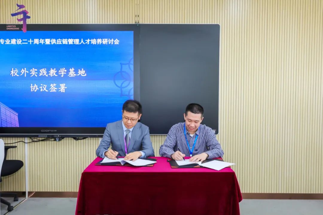刘大勇老师与饿了么资深副总裁、蜂鸟即配总裁韩鎏代表签署饿了么-天津大学校外实践教学基地协议。饿了么-天津大学校外实践教学基地,旨在进一步促进校企沟通合作,实现共同发展目的。面向物流与供应链相关专业同学,提供参观交流、实习培训等社会实践形式,并围绕物流工程、供应链管理、智慧物流与科技创新等方面共同探索实践和创新机会。