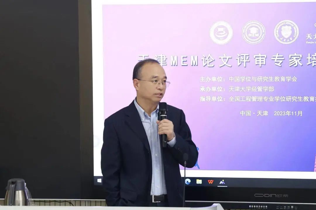 杨宝臣教授在致辞中对各位专家的到来表示热烈欢迎,对天津大学管理与经济学部以及工程管理专业的发展进行了重点介绍,同时指出MEM论文不能模式化、同质化,应与学术论文有所区别、有所特色,希望通过本次会议的深入讨论,充分交流,凝聚共识,共同推动MEM论文工作高质量、高水平发展。