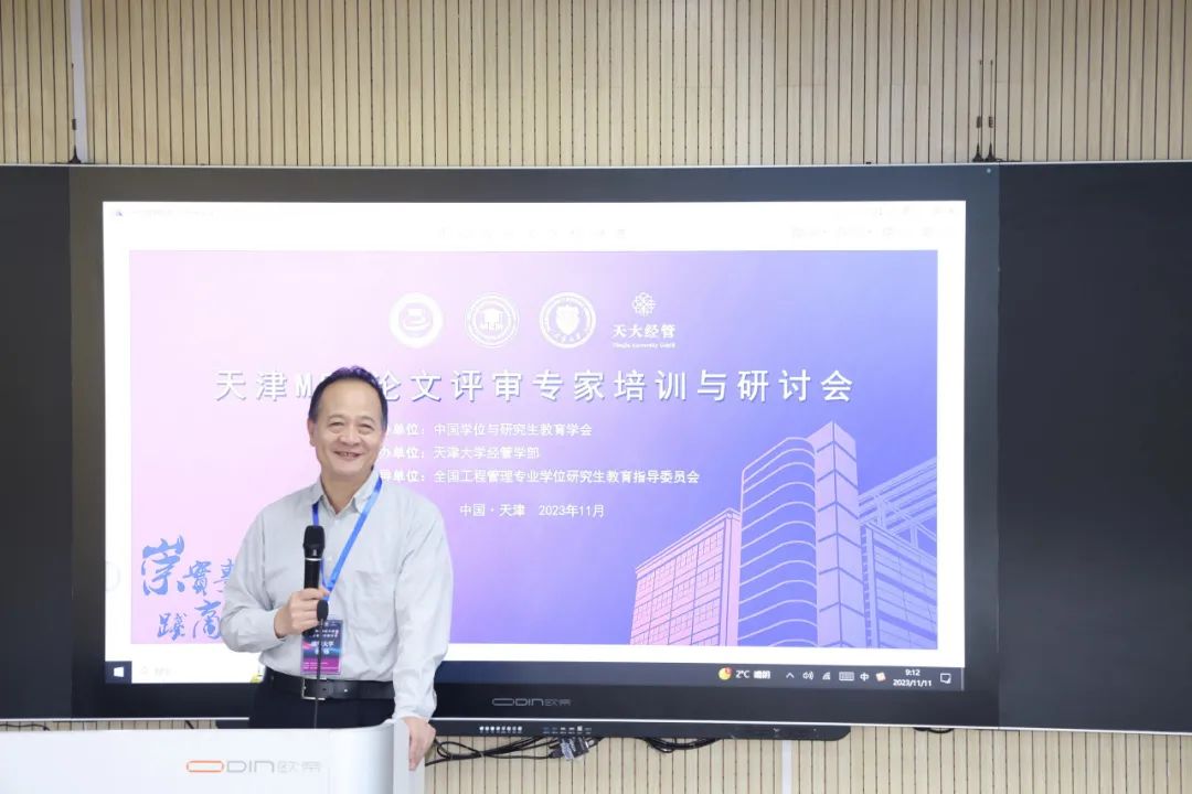 本站讯(天津大学MEM项目 供稿)11月11日至12日,第八期MEM论文评审专家培训与研讨会在天津大学25教学楼顺利召开。会议由中国学位与研究生教育学会工程管理专业学位工作委员会主办,全国工程管理专业学位研究生教育指导委员会(以下简称“教指委”)指导,天津大学管理与经济学部承办。教指委秘书长、清华大学张伟教授,天津大学管理与经济学部副主任杨宝臣教授,教指委委员、北京邮电大学王长峰教授,教指委委员、天津大学王雪青教授,教指委秘书处顾问、清华大学姚建教授,天津大学管理与经济学部MEM项目主任孙慧教授以及来自全国35所院校的80余名专家参会。