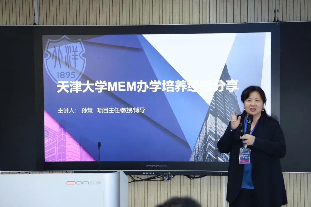 孙慧教授进行了天津大学MEM办学培养经验分享。她首先对天津大学、管理与经济学部以及天大MEM项目的发展历程进行了介绍,随后从培养目标、项目定位、国内外评估认证、教学资源、课程体系、案例建设、实践教学与活动等方面介绍了天大MEM的办学情况。