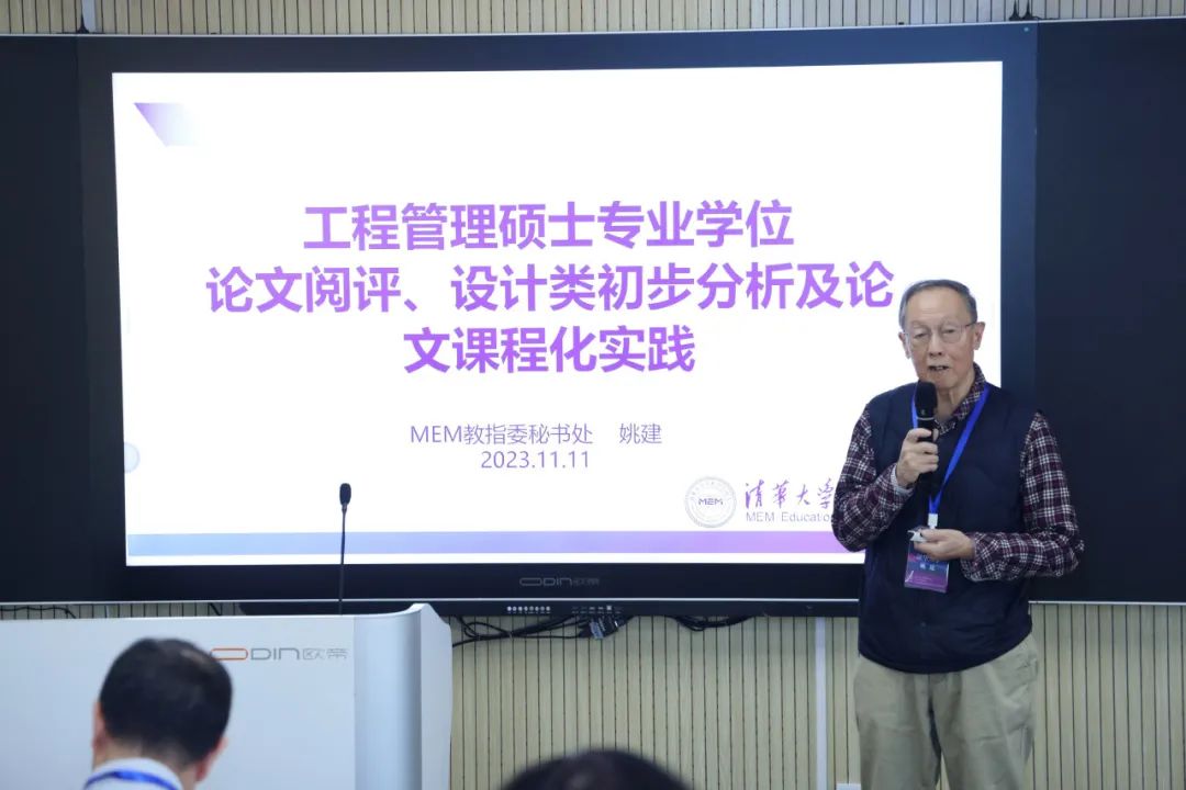 姚建教授进行了《工程管理硕士专业学位论文评阅、设计类初步分析及论文课程化实践》分析解读。通过收集百余篇MEM论文,对MEM论文所涉及的领域、选题范围、内容进行了归纳,梳理了论文中用到的理论、工具与方法,统计了论文质量的评价分布,从而总结了MEM论文的总体趋势及呈现的新特点。此外,他还介绍了《清华MEM学位论文研讨课实践》,从课程属性、过程管理等方面进行分享。