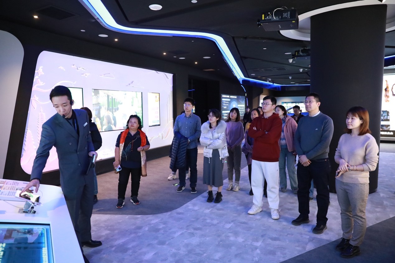 这是一座汇聚了颠覆性科技成果和前瞻性创新的展厅,为参观者提供了一次穿越科技未来的身临其境之旅。讲解员首先向大家展示了腾讯在人工智能领域的引领地位,从语音识别到图像处理,从自然语言处理到机器学习,腾讯在人工智能技术上的深厚积累得以呈现,沉浸式的体验让师生们直观感受到人工智能技术的强大魅力,引发了对未来科技发展方向的深刻思考。腾讯的云计算技术展区让大家对云端技术的应用场景有了更为清晰的认识,深入了解了腾讯云在支持大规模数据处理和存储、实现云端协同办公等方面的创新成果,其中包括数字孪生的校园技术等高科技应用。仔细聆听腾讯公司的发展历程、企业文化、突出贡献后,师生纷纷表示,深刻感受到了中国互联网企业的创新与活力,领略了腾讯在互联网领域的不凡魅力,激发了对校企合作的全新思考。