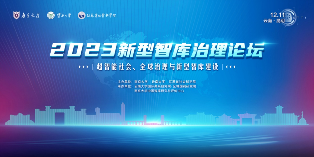 本站讯(天津大学国家知识产权研究基地 供稿)12月11日,由南京大学、云南大学、江苏省社会科学院主办的“2023新型智库治理论坛”在昆明举行。2023新型智库治理论坛由南京大学和光明日报社共同创办,旨在贯彻落实习近平总书记关于中国特色新型智库建设重要论述精神,推动新型智库健康发展,推进决策咨询体系现代化。本次论坛主题为“超智能社会、全球治理与新型智库建设”,聚焦深入学习贯彻党的二十大精神和加快新时代新征程中国特色新型智库高质量发展。