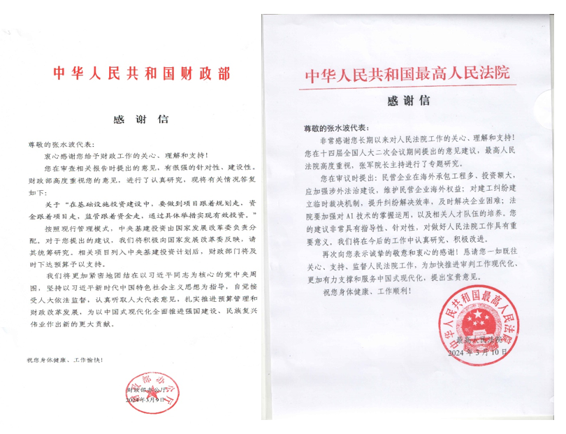 张水波认真履职尽责,以实际行动彰显新时代全国人大代表风采,相关工作成果收到了国家财政部、最高人民法院、最高人民检察院的感谢信,受到新华社、人民日报、央广网、中国青年报、天津日报、经济日报、今晚报、津云等多家权威媒体报道。