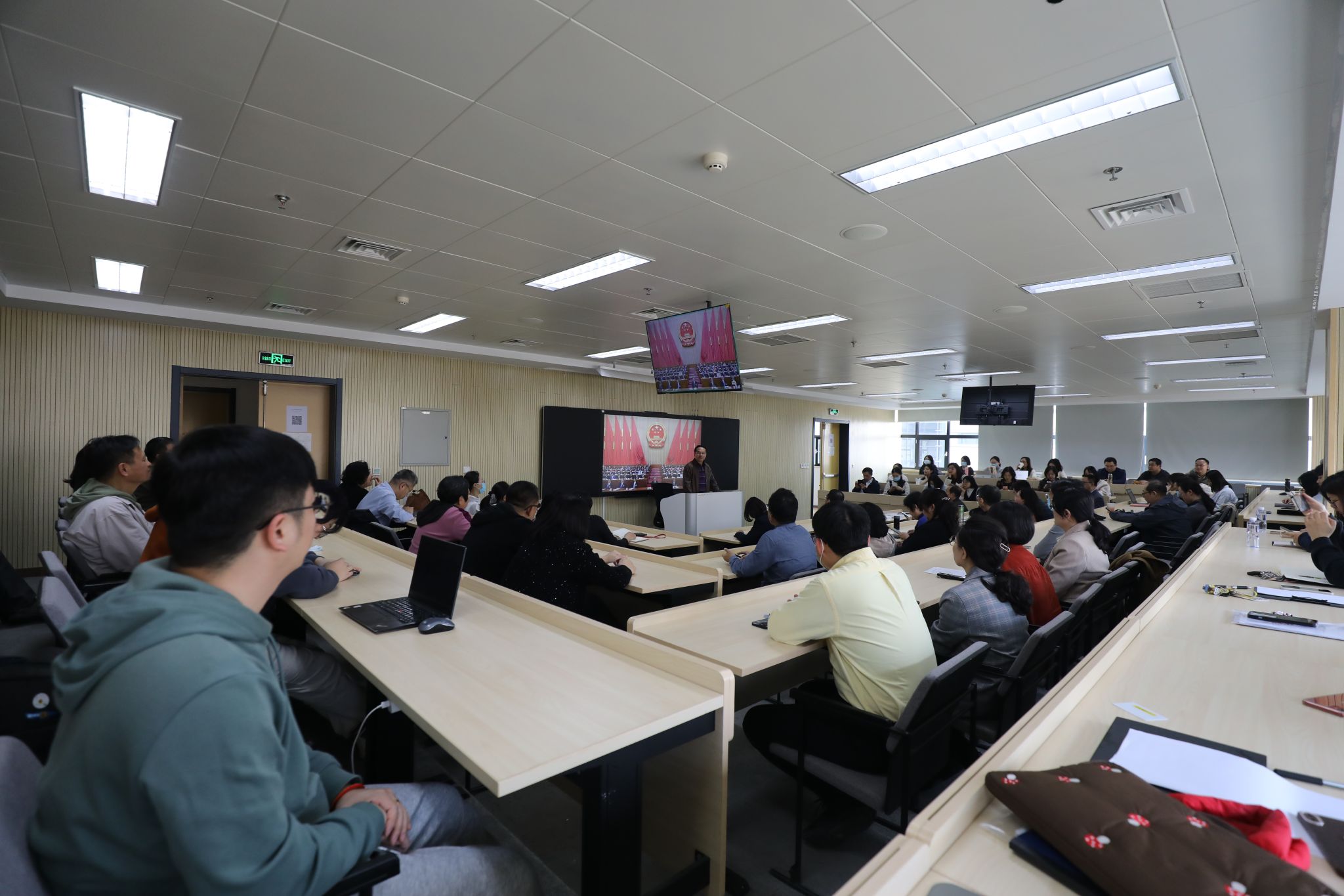 张水波围绕大会主要议程、大会指导思想、习近平总书记的重要讲话、各项工作报告与事宜、天津代表团审议情况和主要活动等方面,结合个人履职经历,对全国人民代表大会精神进行全方位、多角度的介绍。