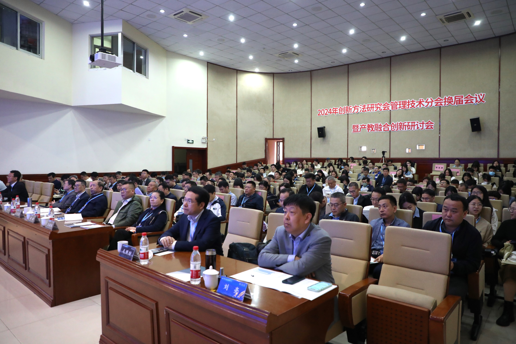 本站讯(通讯员 宇文慧 摄影 谷叶馨)4月22日,2024年创新方法研究会管理技术分会换届会议暨产教融合创新研讨会在天津大学召开。会议主题是“新质生产力与管理创新方法”。天津大学副校长王天友教授,创新方法研究会管理技术分会主任委员、天津大学管理创新研究院名誉院长齐二石教授,融创中国控股有限公司执行总裁路鹏,蔚来高级副总裁魏健,上海海事大学特聘教授王金凤,创新方法研究会理事、天津理工大学裴小兵教授,创新方法研究会管理技术分会秘书长、天津工业大学刘亮教授,中国中车集团有限公司运营部副部长丁亚军等近200人出席会议。会议由天津大学管理与经济学部党委书记、管理创新研究院院长毛照昉教授主持。