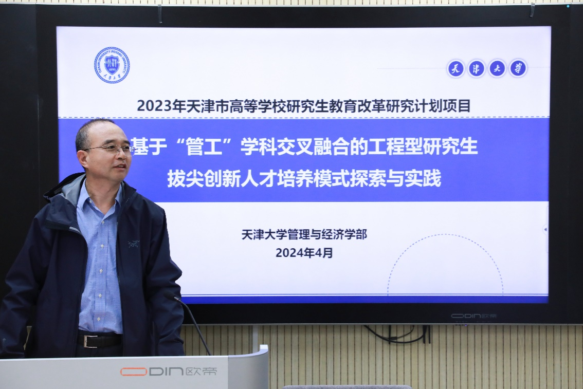 本站讯(通讯员 路欣雅)4月23日,管理与经济学部2023年市级研究生教改项目开题论证会在25教C504教室举行,获批立项的4个项目开展开题工作。由南开大学商学院副院长林润辉,天津财经大学金融学院院长李向前,天津大学经管学部教授杜纲、赵道致、张水波等五位专家组成的评审专家组指导项目开题。学部副主任杨宝臣主持开题论证会,研究生院赵红星老师出席会议。