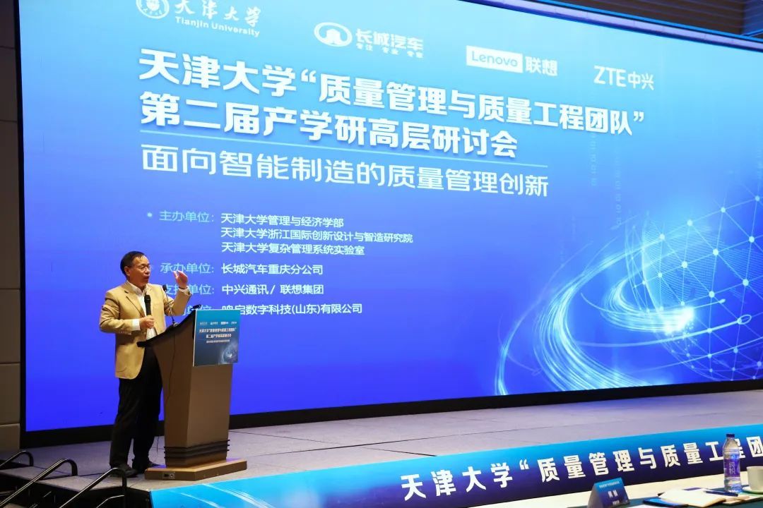 本站讯(通讯员 李岩)4月27日,第二届质量管理产学研高层研讨会在重庆永川成功召开。此次研讨会由天津大学管理与经济学部、天津大学浙江国际创新设计与智造研究院及天津大学复杂管理系统实验室联合主办,联想集团和中兴通讯协办,长城汽车重庆分公司承办,鸣启数字科技(山东)有限公司提供会议赞助。本次研讨会采用线上线下相结合的形式,汇聚智能制造领域的企业高层、业界知名专家及国内高校学者等共同探讨面向智能制造的质量管理创新,超过150位来自产业界和学术界的专家学者现场参会,线上参会人数超过500人。