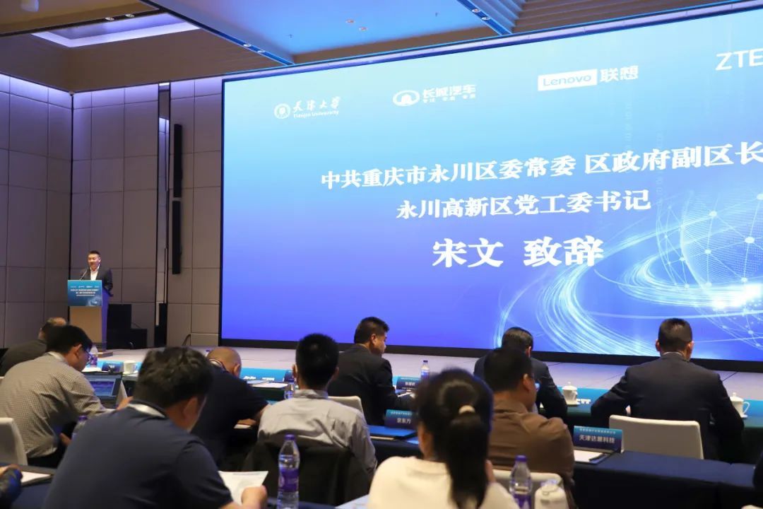 永川高新区党工委副书记、管委会主任盛逵介绍了永川招商引资情况,他提到,永川是成渝地区双城经济圈枢纽节点,功能设施完备,在智能制造发展上具备天时地利人和的优势,期待产学研各界人士能够汇聚永川,共创美好未来。