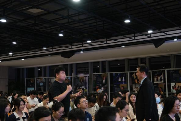 问答环节中,同学们积极提问,就讲座内容及个人工作实践进行了深入的交流与探讨,现场气氛热烈而活跃。肖松山耐心解答了关于如何在成为复合型人才的过程中平衡广博与精深之间的矛盾等问题,并鼓励学生们要敢于拥抱变化,勇于探索未知,不断学习和成长,以适应未来社会的需求。
