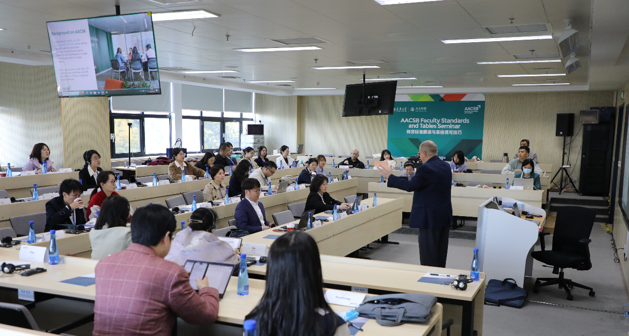 研讨会上,AACSB执行副总裁、全球首席成员官、亚太区首席执行官Geoff Perry教授对标准的内涵、应用以及典型案例进行了深度解析;AACSB东亚区负责人徐国栋先生结合国内的学科设置、院校发展等背景,对与会者提出的具体问题积极回应。