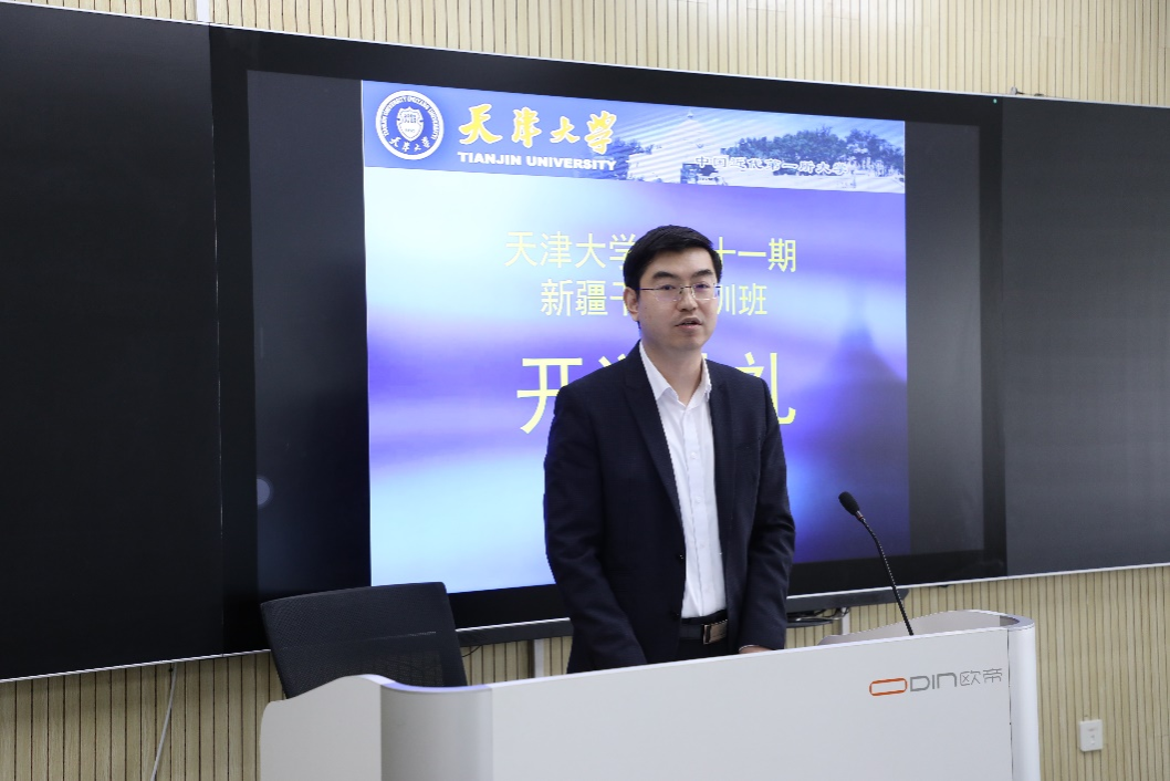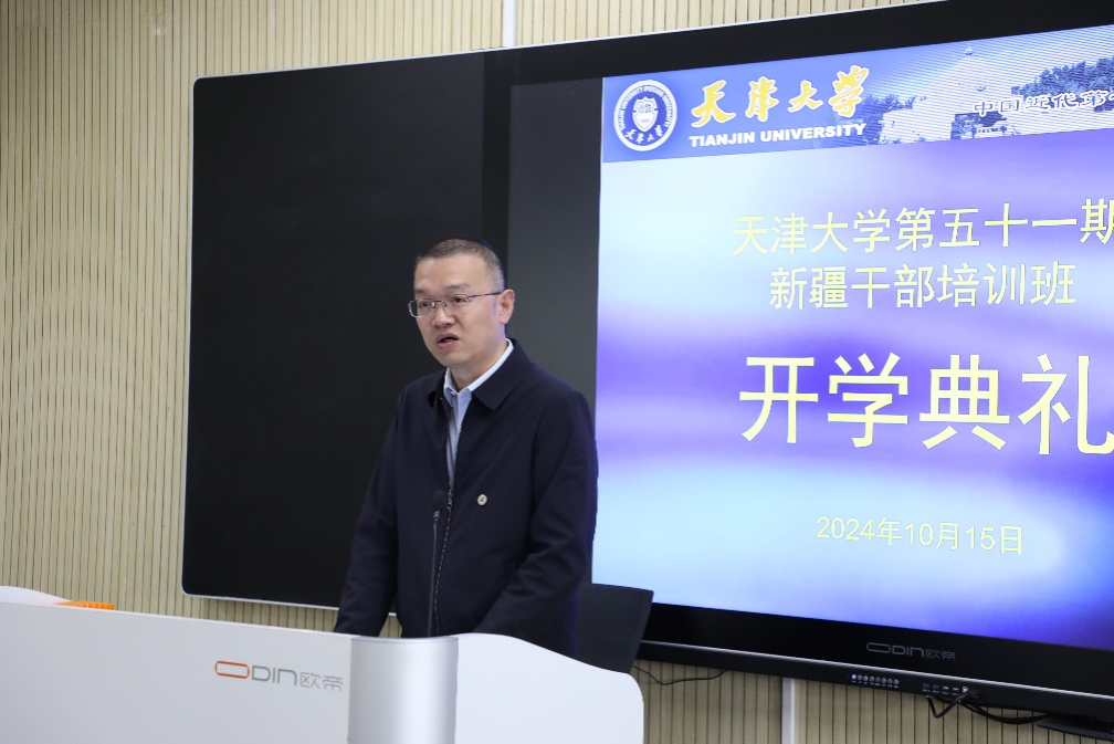 本站讯(通讯员 王伟 摄影 谷叶馨)10月15日,天津大学第51期新疆干部经济管理培训班(以下简称“新疆班”)开班仪式在天津大学卫津路校区25教学楼举办。天津大学研究生院非学历继续教育办公室主任蔡建爽、管理与经济学部副主任杨宝臣、新疆班班主任老师及全体新疆班学员参加典礼。仪式由杨宝臣主持。