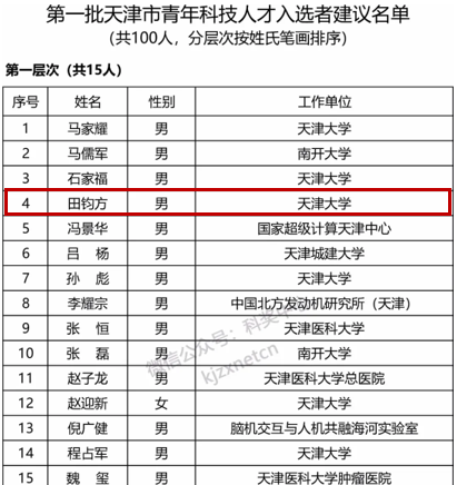 据悉,天津市青年科技人才项目旨在选拔具有较强创新潜力的青年科技人才,支持他们潜心研究、深入探索,培育一批有望在世界科技前沿取得突破的优秀青年科技人才。青年科技人才每年评选一次,每次评选100人左右,分为三个层次,本年度第一层次人才共入选15人。