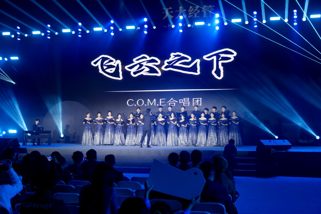 主题晚会由栉风沐雨,薪火永续;四秩传承,笃行不息;携手共进,华章待启三个篇章组成,于天津大学卫津路校区体育馆举办。这场由天津市社会团体、曲艺名家、经管学部师生、校友共同呈现的晚会,包含了戏曲、曲艺、歌曲、舞蹈、朗诵等多个节目,这不仅是一场精彩绝伦的视听盛宴,更是经管人精神风貌与深厚情怀的生动诠释。