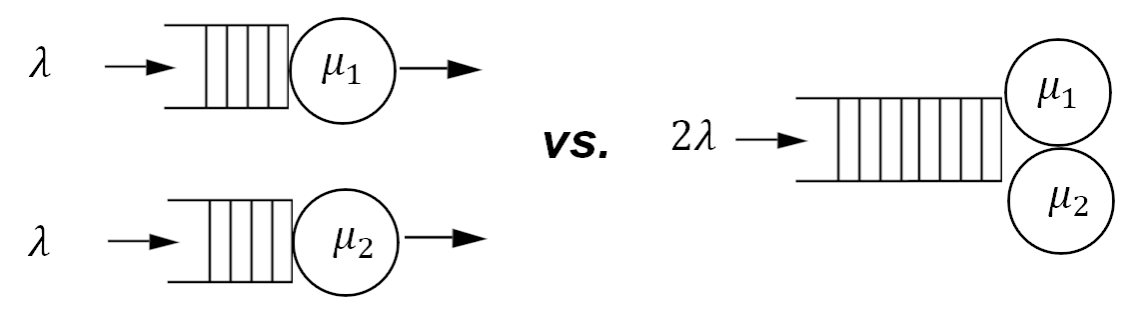 图示:上述研究中,专有服务和池化服务示意图对比