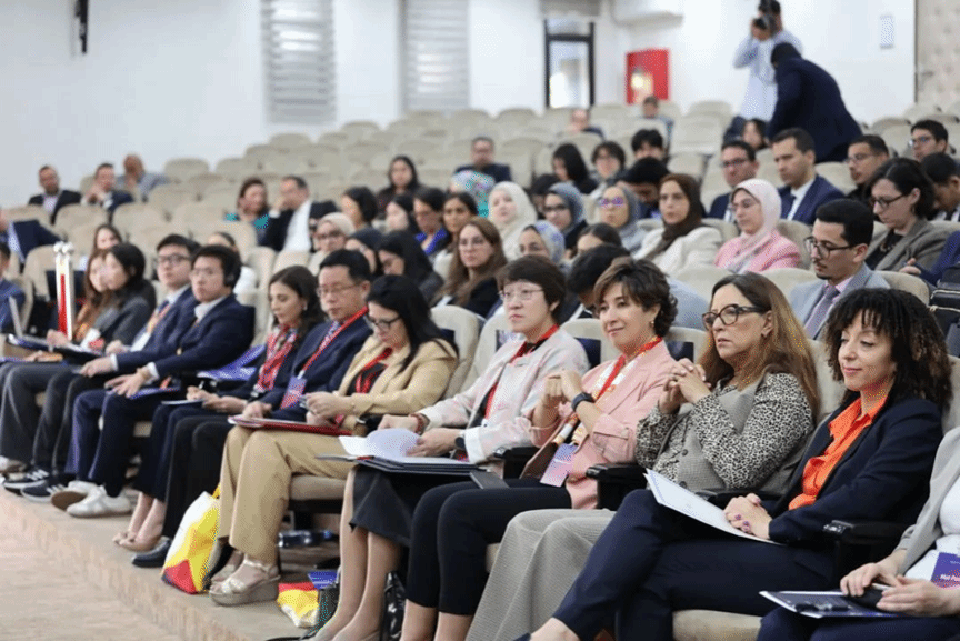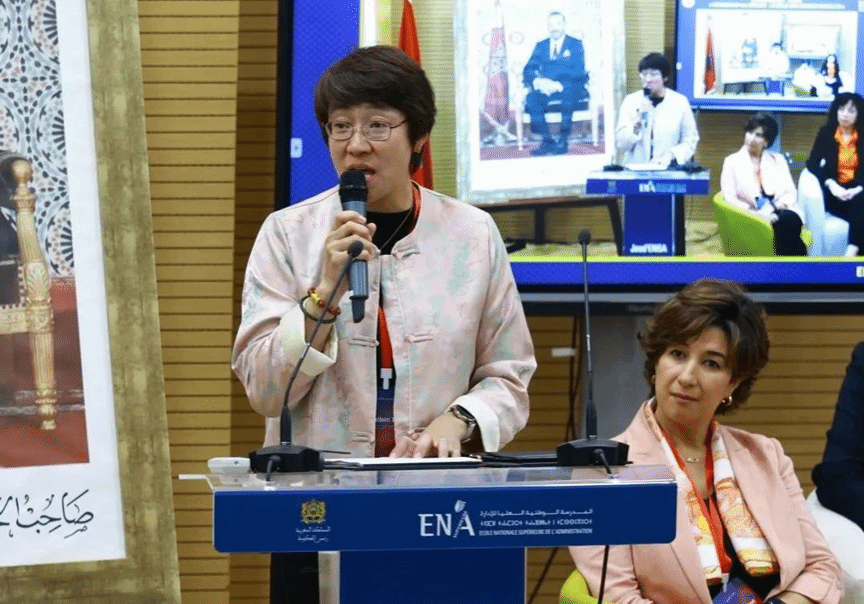 当地时间4月25日,天津大学与ENSA联合举办的“人工智能中的女性:重新定义领导力”国际论坛于拉巴特顺利召开。摩洛哥数字转型与行政改革部部长阿玛尔·艾尔·法拉赫·塞戈鲁奇尼(Amal El Fallah Seghrouchni)、中华人民共和国驻摩洛哥王国特命全权大使李昌林出席论坛并发表主旨演讲,天津大学管理与经济学部主任杜慧滨,公共管理学院常务副院长刘大勇,国际认证办公室主任梁洨洁,高层次国际化人才培养创新实践基地教师曾昭,天津大学全球南方研究院教师代表冯卉,公共管理学院王佳丽等教师,以及来自天津大学经管学部、精仪学院、外国语学院的19名学生参加了论坛。论坛由ENSA校长Nada Biaz与管理与经济学部主任杜慧滨共同主持。