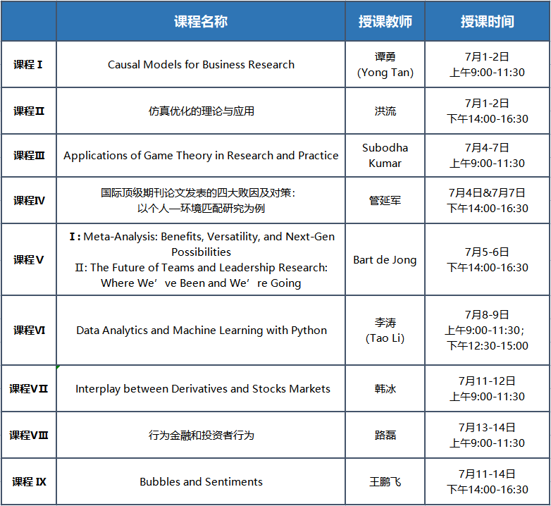 本期暑期学校拟开设以下9门课程(周日不开课),具体授课平台信息将于开课前发布。