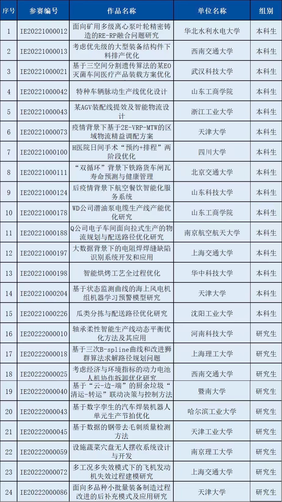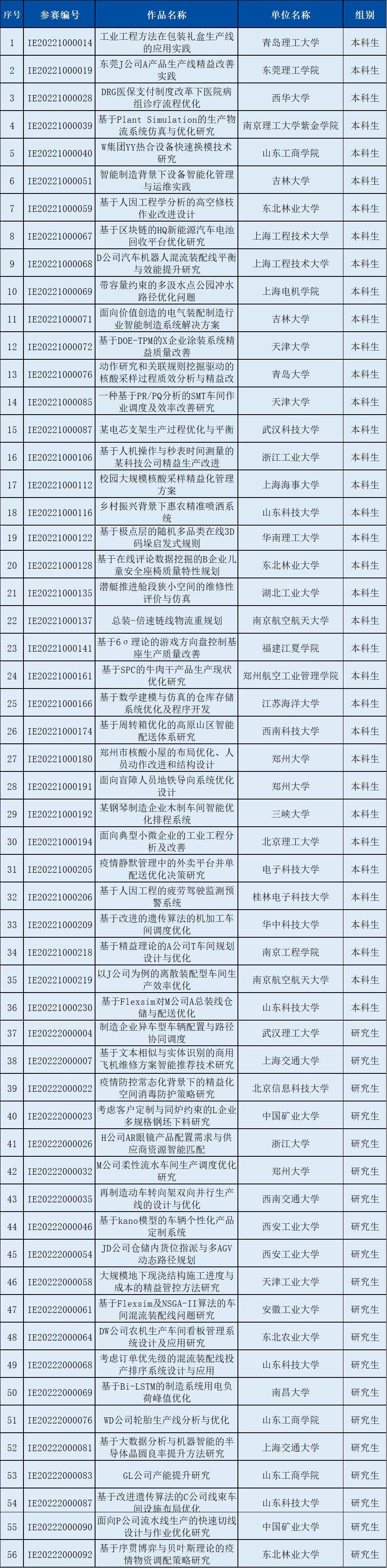工业工程与精益管理创新赛总决赛拟在2022年11月20日以线下和线上相结合的方式进行,具体时间地点方式另行通知。