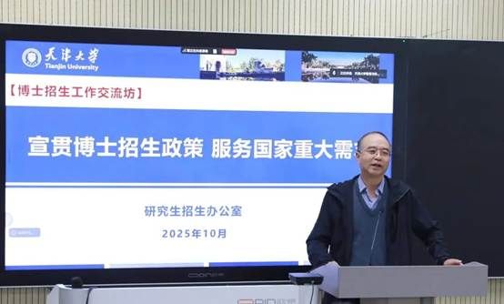 为全面落实学校博士研究生招生“全年化、规范化、多样化、优质化”建设要求,进一步提升招生工作的规范性与人才选拔质量,10月29日,管理与经济学部在25C513会议室以“线上线下结合”的方式举办2026年博士招生政策宣贯会。天津大学研究生院招生办主任卢铮松、博士招生科科长陈涛出席会议,会议由学部副主任杨宝臣主持,学部博士生导师、青年教师及研究生教务管理人员近60人参会。