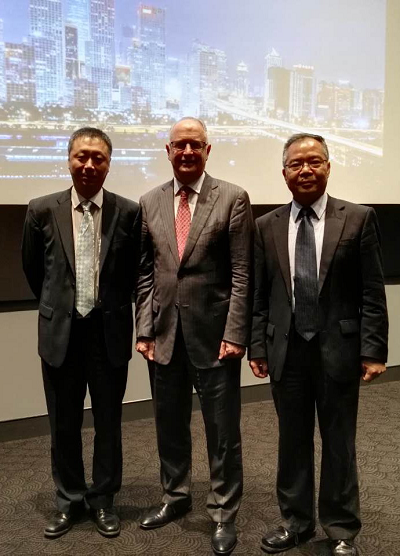 (2016年与主编Ross Garnaut教授和宋立刚教授在澳大利亚国立大学发布会会场合影)