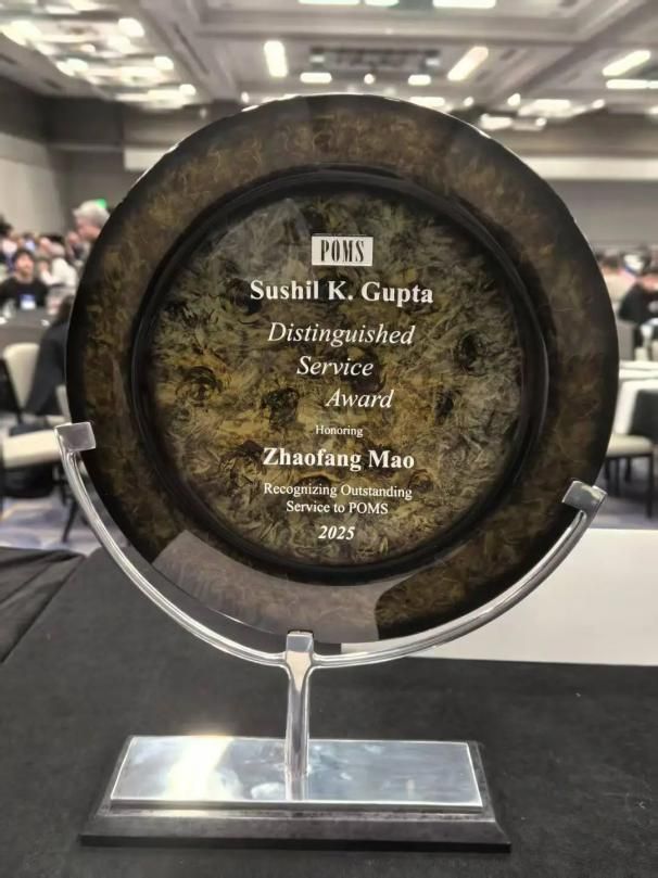 On May 11, 2025, professor Mao Zhao-fang, party secretary of the College of Management and Economics at Tianjin University and former vice president of the Production and Operations Management Society (POMS), was awarded the Sushil K. Gupta POMS Distinguished Service Award at the 2025 POMS Annual Conference. He is the third Chinese recipient of this award after Stanford University's Professor Hau Lee (2014) and UCLA's Professor Chris Tang (2017), as well as the first awardee from a Chinese university.