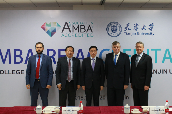 During November 19 to 20, 2018, the College of Management and Economics of Tianjin University welcomed the re-accreditation of MBA/EMBA/MPA programs by the accreditation experts from AMBA. The re-accreditation expert group is composed of Andrew Lock, Honorary Professor of Business School of Leeds University, Robert O'Connor, Executive Director of the Queensland University of Technology (QUT) Graduate School of Business (GSB) and for QUTeX, Zhong-ming Wang, Senior Professor of Liberal Arts of Zhejiang University, and George Iliev, Director of Development Markets of AMBA.