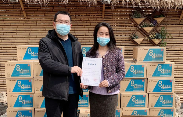Hong-mei Shi, EMBA alumna, General Manager of Zhongpu Culture Communication (Tianjin) Co., Ltd., donated one infrared temperature measuring door, 2,000 bottles of 84 disinfectant, and 1,000 masks to College of Management and Economics (CoME). Shi did her utmost to help CoME to meet the material requirements for resumption of work, which fully demonstrates the entrepreneurial awareness of the new era.