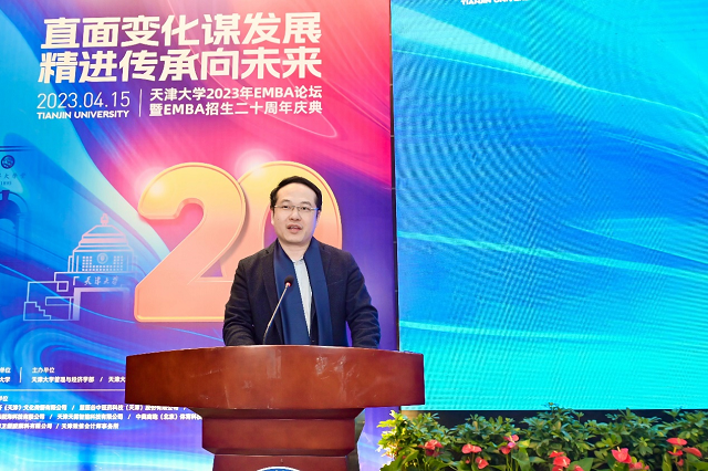 Guo Baoyin, President of Tianjin United Business and Innovation Development Promotion Association, and Chairman of Jinglan Group, on behalf of the Association, warmly congratulated the successful holding of the TJU 2023 EMBA Development Forum and the 20th anniversary celebration of EMBA enrollment. He stated that since its establishment, TJU has always had genes of cooperation and innovation. The spirit of entrepreneurship, hard work, academic excellence, and patriotic dedication has been passed down from generation to generation. Since the enrollment of the TJU EMBA program in 2002, based on the disciplinary advantages and strong faculty of the CoME, it has continuously delivered groundbreaking innovation-thinking, strong execution, and globally-minded and responsible knowledge-based talents to society. They have achieved significant accomplishments in various industries, not only with patriotic dedication but also practical actions, showing the style of "TJUers" everywhere.