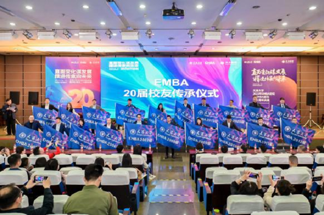 This year marks the 20th anniversary of the enrollment of Tianjin University's EMBA program. In order to pass on the spirit of Tianjin University's EMBA, the Alumni Association Council of the Tianjin University EMBA was established at the meeting, and a ceremony was specially planned to pass on the EMBA 20th alumni tradition. Each representative of the EMBA raised a flag. The twenty flags symbolize the 20 years of continuously cultivating the talents of the EMBA program of Tianjin University, as well as the 20 years of struggle of EMBA alumni together. In the future, the Tianjin University EMBA team will continue to grow and the excellent traditions and spirit of EMBA will never cease.