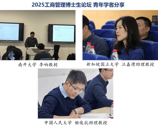 分论坛中,三位杰出青年学者在分会场进行了分享。其中,战略与营销分会场由管理与经济学部市场营销系主任罗城副教授主持。新加坡国立大学商学院汪嘉倩助理教授以“博士生涯规划经验分享”为主题,结合自身经历生动讲述了博士生涯规划的要点与方法。中国人民大学商学院姬俊抗助理教授以“管理学博士科研之路:个人经验分享与前行建议”为主题,分享了管理学博士科研能力提升与成长的经验与建议。运营分会场由刘伟华教授主持,南开大学李响教授以“供应链运营模式选择研究:一个系统性框架”为主题进行了深入讲解,并与现场同学热烈探讨。