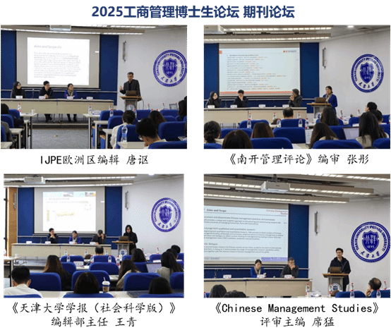 10月25日,2025工商管理博士生论坛开幕式在天津大学会议楼顺利举行,本次论坛主题为“百卅兴学担使命,数智创新启未来”。来自北京大学、中国人民大学、瑞典林雪平大学、新加坡国立大学、天津大学、南开大学、天津财经大学的多位工商管理领域专家学者, International Journal of Production Economics、《南开管理评论》、Chinese Management Studies、《天津大学学报(社会科学版)》等知名期刊编辑,以及各高校的博士生共60余人参与了本次论坛。天津大学管理与经济学部副主任杨宝臣、郑春东出席活动。