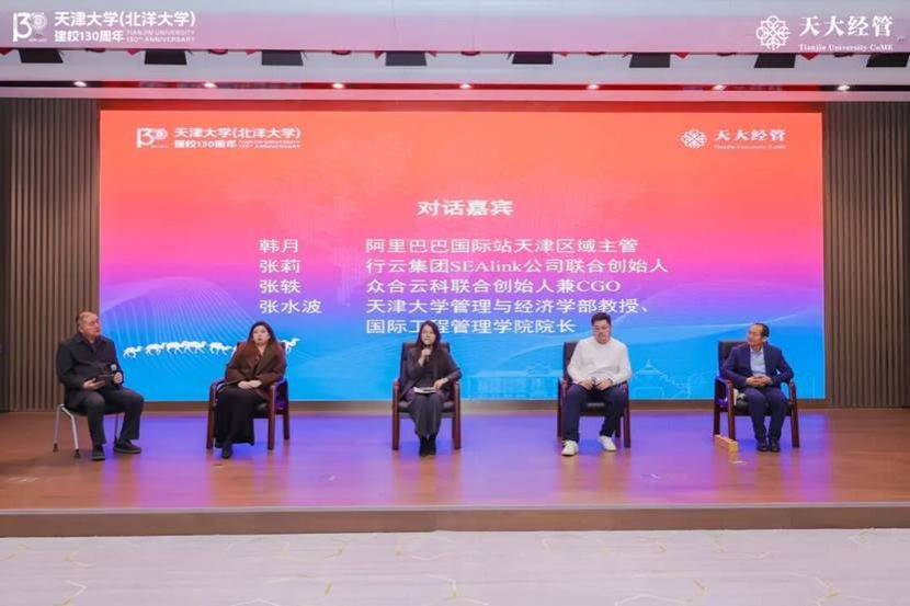 圆桌论坛以跨界对话的形式进一步延展了讨论深度。阿里巴巴国际站天津区域主管韩月,行云集团SEAlink公司联合创始人张莉,众合云科联合创始人兼CGO张轶,天津大学国际工程管理学院院长张水波教授围绕“四个问题”展开多角度交流:一是“一带一路”倡议实施十年来,企业出海需求发生的主要变化;二是当前中国企业出海最紧迫、最棘手的核心痛点,是“钱”的约束、“人”的短板,还是“规矩”的挑战;三是中国企业当下最缺什么样的国际化人才;四是为支撑企业出海实践,还有哪些值得深入研究的主题与问题。嘉宾们结合跨境电商、平台出海、全球工程项目与供应链协同等具体案例进行深入对话,为现场听众带来丰富的实践洞见和研究启发。圆桌论坛环节由天津大学工业工程系主任、教授窦润亮主持。