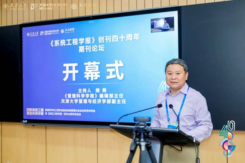 本次论坛设置主论坛及管理科学与工程、工商管理、公共管理、应用经济四个分论坛,来自《管理世界》《管理科学学报》《系统工程理论与实践》等30余家国内外权威期刊的编辑专家齐聚天大经管,共议期刊高质量发展,探讨中国特色自主知识体系构建路径。本次论坛的举办,恰逢天津大学持续推进“双一流”建设、加快推进新文科交叉融合发展的重要阶段,为我国管理与系统科学学术生态的繁荣注入新活力。论坛开幕式由《管理科学学报》编辑部主任、天津大学管理与经济学部副主任熊熊教授主持。