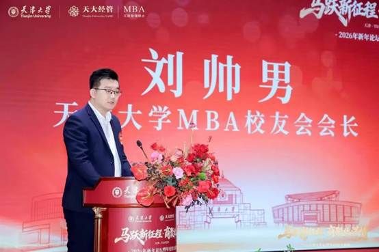 天津大学MBA校友会会长、天津海棠盛源环保科技有限公司董事长刘帅男代表主办方致辞。他表示,正所谓“众人拾柴火焰高”,在学部领导的支持和校友们的共同努力下,天大MBA校友会将继续发挥平台优势,在新的一年再创辉煌 。