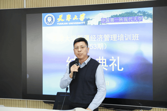 会上,袁惠龙宣读了天津大学新疆经济管理培训班(第53期)结业决定并颁发了结业证书。