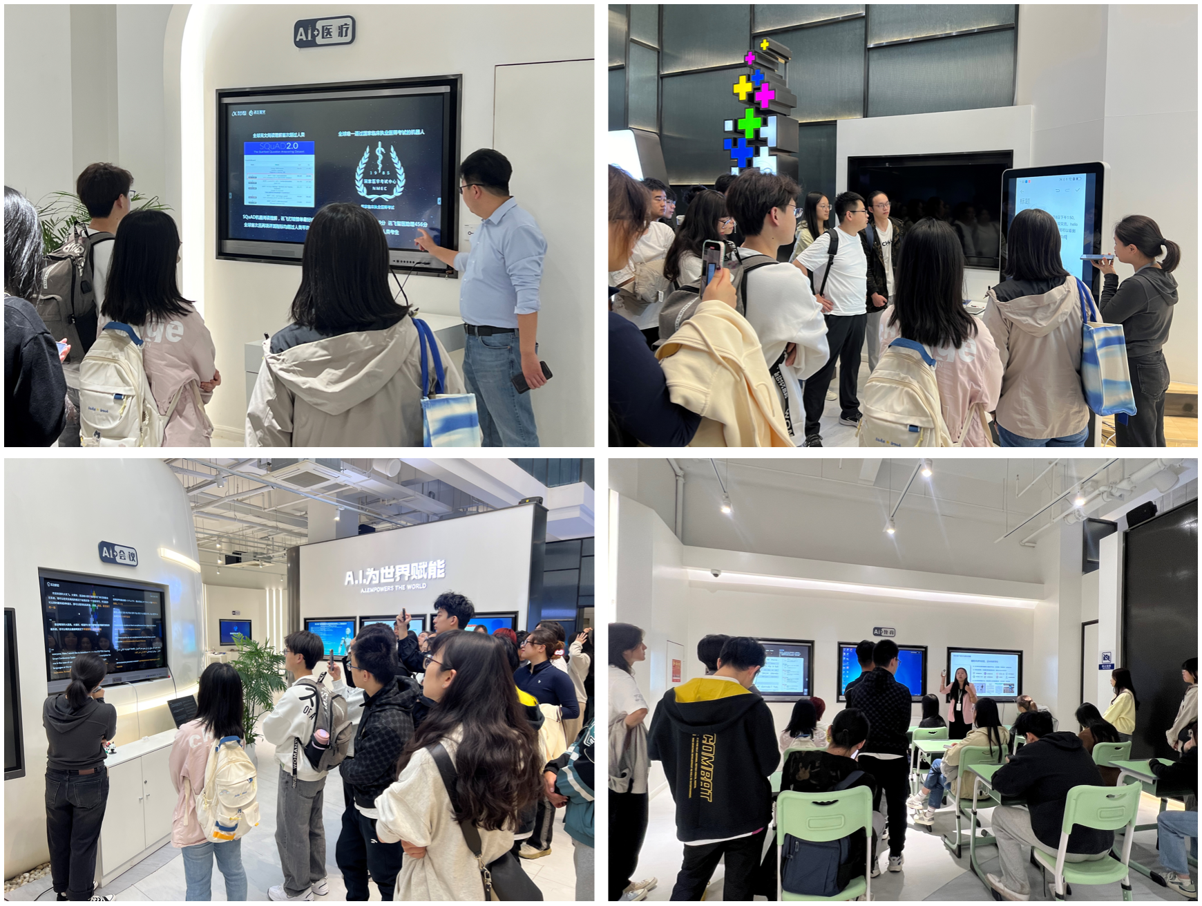 随后,科大讯飞员工围绕“AI+”系列主题,如AI+企业数字化、AI+工业互联网、AI+智慧城市、AI+教育服务等,进行了生动详尽的讲解。通过实际案例和应用数据的呈现,阐述了人工智能如何赋能各行各业,推动社会经济的转型升级。师生们还在展厅内进行了自由探索,亲自体验了各类AI产品。从智能客服的流畅对话,到智能家居的便捷操作,再到教育平台上个性化学习方案的推荐,让大家深刻感受到了AI赋能的强大能力。