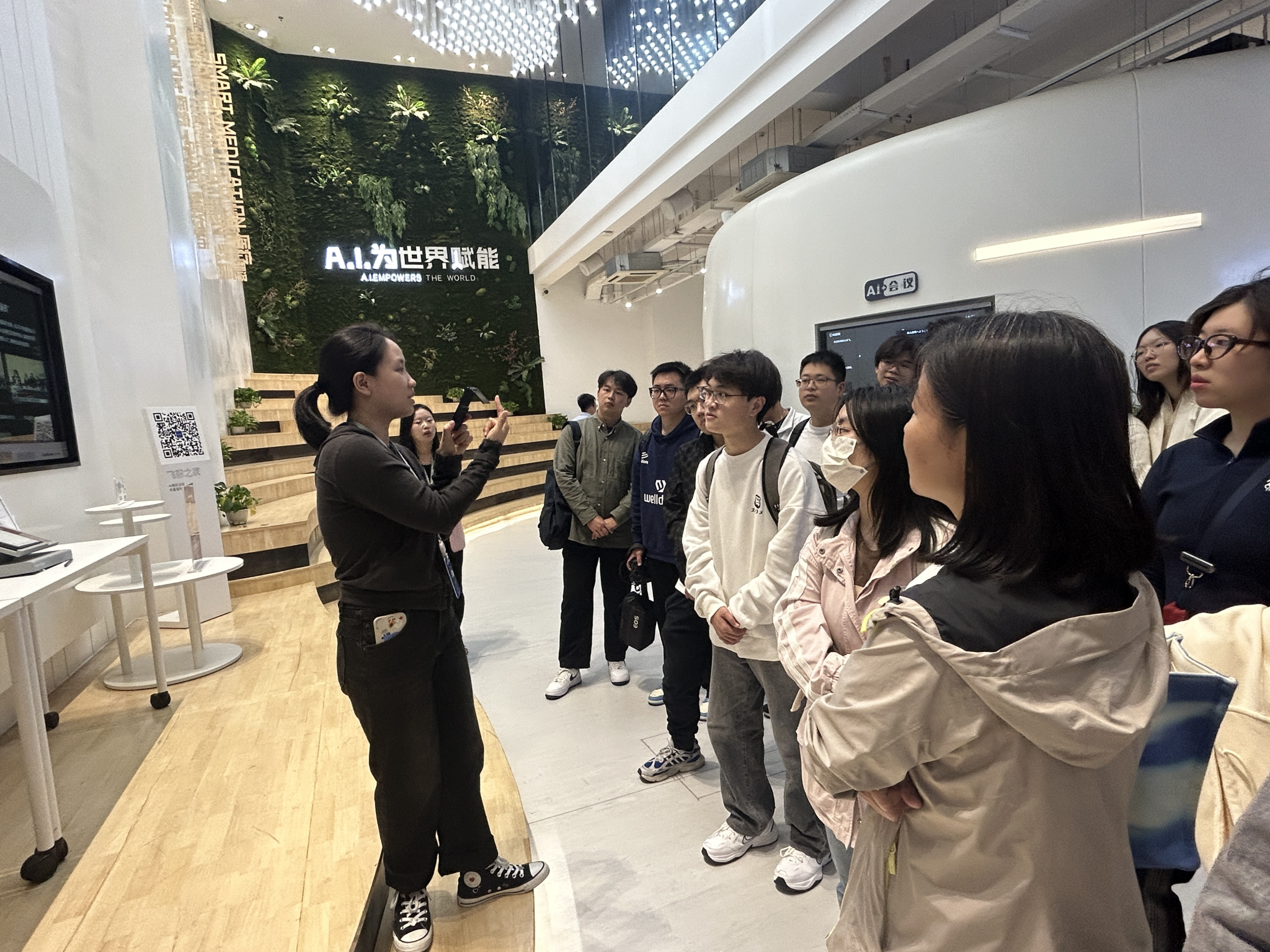 在参观的尾声,管理与经济学部张敏教授特别邀请了科大讯飞的员工,就企业人才招聘、个人专业背景及工作经历等方面进行了分享交流。科大讯飞员工结合亲身经历,分享了企业对人才的需求趋势、职业发展路径以及个人成长心得,为学生们提供了宝贵的职业规划建议。张敏教授借此机会,鼓励学生们紧跟时代步伐,密切关注AI技术的发展动态,积极规划自己的职业生涯,努力成为适应未来社会需求的复合型人才。张敏教授还表示,此次企业参访不仅是一次难得的学习机会,更是推动产教融合、提升人才培养质量的重要实践。她期待未来能有更多类似的合作机会,让理论与实践紧密结合,共同培养出既懂管理又懂技术的复合型人才,为推动我国人工智能产业的繁荣发展贡献力量。