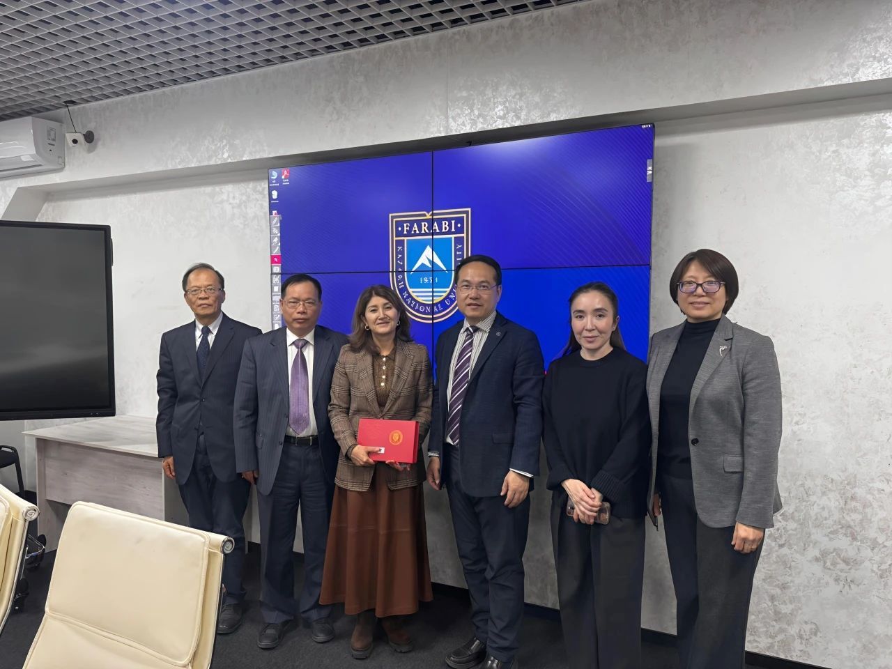 12月17日,代表团来到哈萨克斯坦阿拉木图,拜访了阿里·法拉比哈萨克国立大学。该校国际合作处主任Yesbol Omirzhanov率队欢迎代表团一行来访。