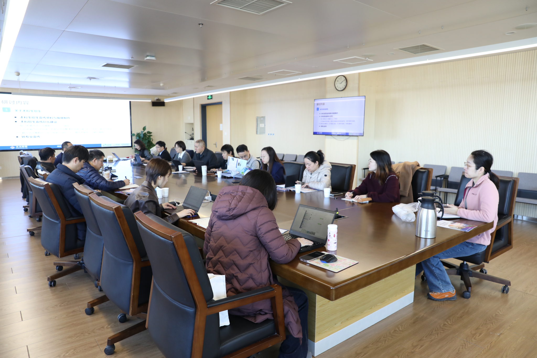 本科生招生宣传相关事宜交流环节,郑春东介绍了目前学部在本科招生方面的新挑战。为积极应对招生的新形势变化,学部将进一步完善招生宣传各类资料,同时扩大学部的招生宣传队伍,请各专业积极谋划,做好各专业的招生宣传工作。与会老师就宣传资料、宣传形式的改革创新进行了深入讨论和交流,并表示未来将大力支持招生宣传工作,为学部本科招生积极助力。
