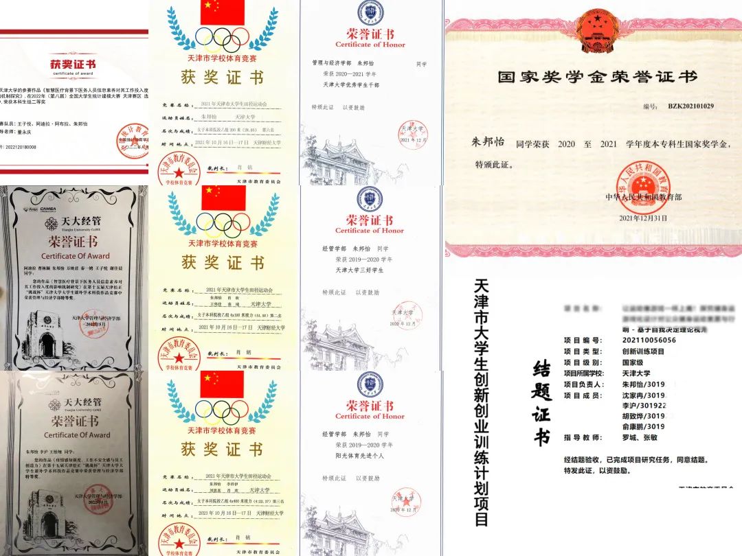 本站讯(通讯员:朱邦怡 姚丝译)国奖获得者、天津市优秀学生、天津大学三好学生、天津大学优秀学生干部、阳光体育先进个人、2020年经管榜样、保研至清华大学医院管理专业,她不断挑战自己迎难而上。作为国家二级运动员,她一往无前,获全国级别田径比赛第一名。作为学生干部、预备党员,她投身学生工作,服务集体,无私奉献……