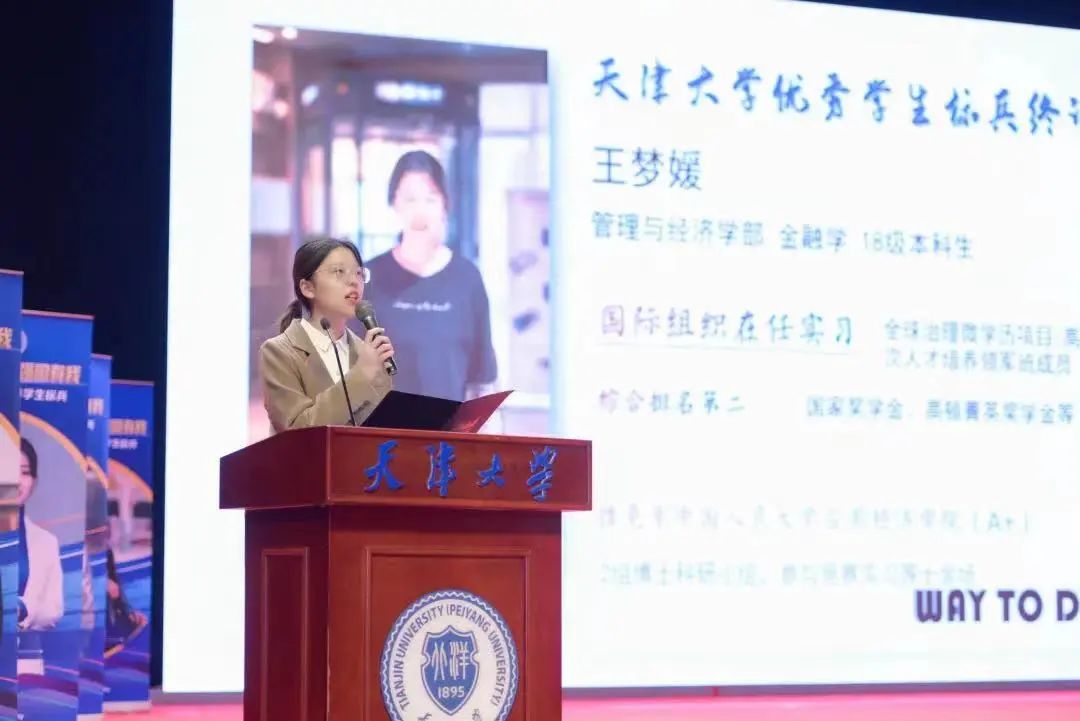 王梦媛,管理与经济学部2018级本科生;全球治理微学历项目/高层次人才培养领军班成员。推免至中国人民大学应用经济学院;于中国—东盟中心国际组织实习;获天津大学优秀学生标兵、国家奖学金、牛津小组项目最高奖、清华行研大赛全国二十强等荣誉;参加英国牛津交流项目,联合国实战培优训练营等国际项目,因优异表现获联合国训练研究所官方推荐信。