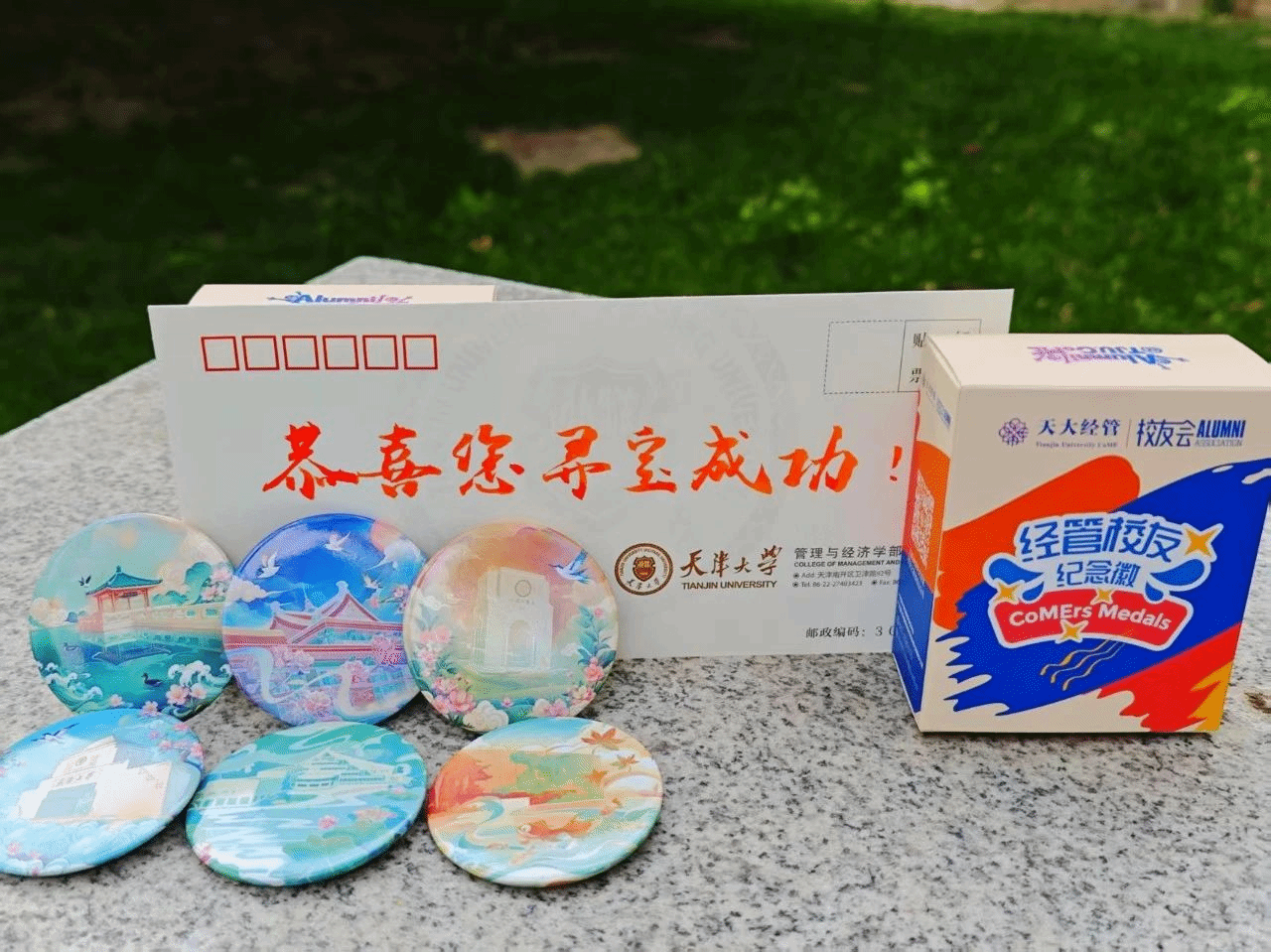 活动规则:本次寻宝活动以“天大经管40周年限定纪念盲盒徽章”为宝藏,盲盒徽章将分布在校园各个角落,等着校友们去寻找,校友们找到盲盒徽章后即可带它回家。