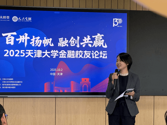 讨论结束后,天津大学金融学2014级校友、北大光华管理学院教师权盈月,2019级校友、南开大学金融学院博士生石贵强,2019级校友、金融监管局郭劭妤,2018级校友、物流工程师李书奇四位组长依次上台总结发言。整场圆桌论坛不仅是思想交流的盛宴,更是情感联结的桥梁。
