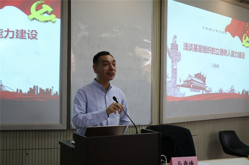 授课中,马寿峰书记首先强调了开展“不忘初心、牢记使命”主题教育的重大意义,同时他指出高校的根本任务是“立德树人”,我们的初心就是培养合格的社会主义建设者和接班人。接下来,他从“从‘主题教育’学‘立德树人’”、“从‘基层组织’思‘立德树人’”、“从‘调查研究’谈‘立德树人’”三个层面对基层组织立德树人能力的内涵、现状和提升途径进行了深入阐释。