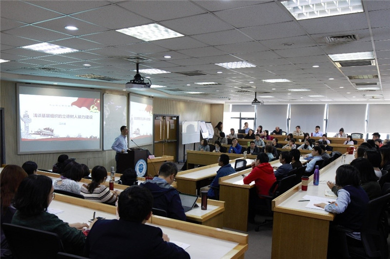 2019年11月5日下午,天津大学管理与经济学部在25楼A区三层C报告厅组织“不忘初心、牢记使命”专题党课。管理与经济学部党委书记马寿峰以“浅谈基层组织的立德树人能力建设”为题,为学部全体教职员工100余人上了一堂生动的党课。专题党课由管理与经济学部党委副书记袁婷主持。