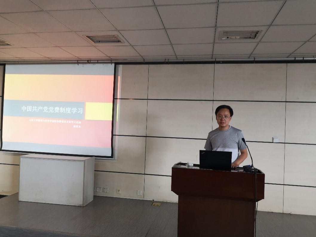 作为财务管理系党支部“党史微课堂,今天我来讲”学习党史系列活动的一部分,本次学习结合了财务管理系的专业特色,围绕“党费”主题展开。财务管理系青年教师杨育龙在整理文献资料的基础上,给支部党员梳理了中国共产党成立至今的与党费管理相关的文件和规定,并且介绍了党费相关的财务会计制度。我们党一直高度重视党费工作,在不同历史时期都有专门党费收缴管理方面的文件规定,这些规定不断完善发展,形成了我们党特有的党费制度。历经90多年的发展,党费制度依然发挥着凝聚党的力量、规范党的组织、坚定党的信仰的重要作用。