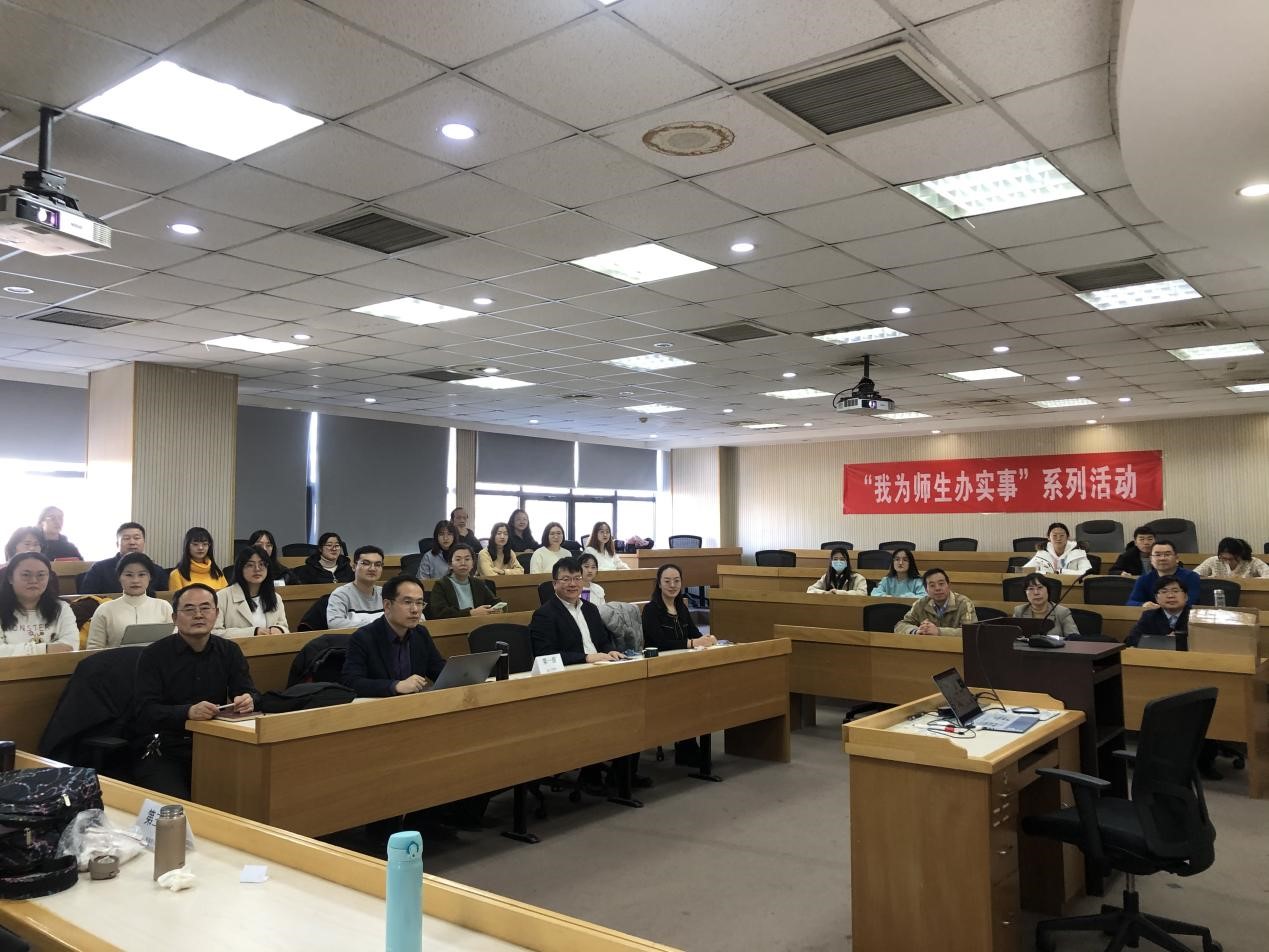 师生研讨环节,老师和学生之间就“课程体系的实行情况”、“全导师制培养体系的培养情况与建议”、“如何给学生减负并指引学生在大学期间自由而全面的成长”三个议题展开研讨,2018级本科生第二党支部的7名学生积极发言,与老师互相交流、互相学习。曹悦男同学就课程体系的实行情况发言:“物流工程专业大三下课程较多,课业压力较大,建议把一些较好理解的课放到大二,把较复杂的课放到大三。同时把大三学年的课平衡分配一下,如人力资源、仓储、运输、经济学这些比较偏记忆的科目可以让同学们早些学习,这也有利于学生参加一些学科专业大赛。希望学部可以加强与学生关于课程安排的沟通。”对于全导师制度,张蓝方同学提到:“各类导师在我们的学习和生活中,担任什么样的角色,还有些模糊。希望我们能够多得到业界导师的一些指导。总体来说,我们和各类导师的接触还不够多,希望能和班主任、专业导师、业界导师以及学友导师们更多地沟通,更好地成长。”此次支部共建活动对于推动经管学部本科生课程体系及全导师制度规范化、完善化起到了积极作用。